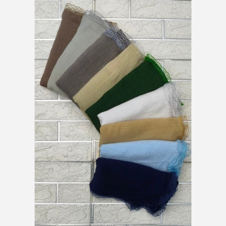 🍃شال پلیسه 🍃 جنس نخی برشگا 💫 حاشیه گیپور 😍 بسیار شیک و پرفروش 👌 در12 رنگ زیبا 🌈 📌قواره 65/190