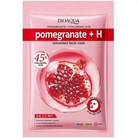 ماسک صورت ورقه ای آنتی اکسیدان و آبرسان انار و هیالورونیک اسید وزن 25 گرم