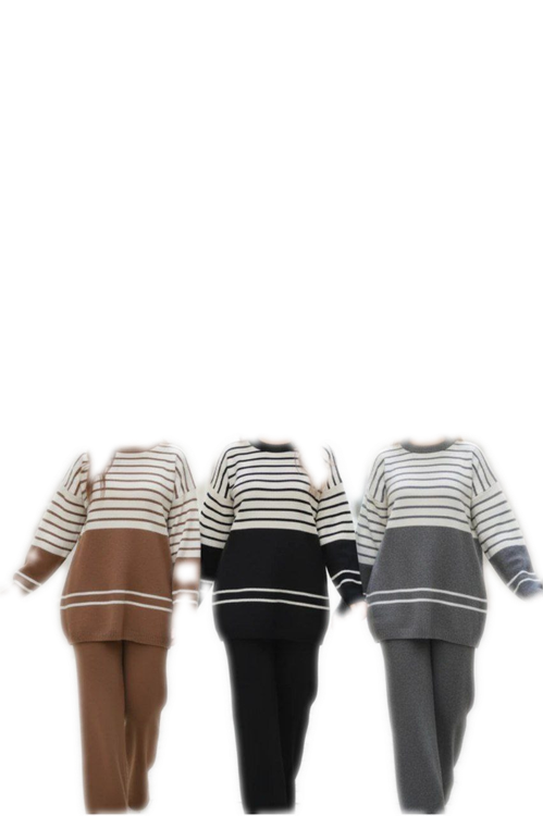 ست بلوز شلوار بافت طرح دار نخ آکریل ترک