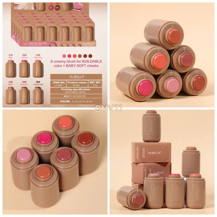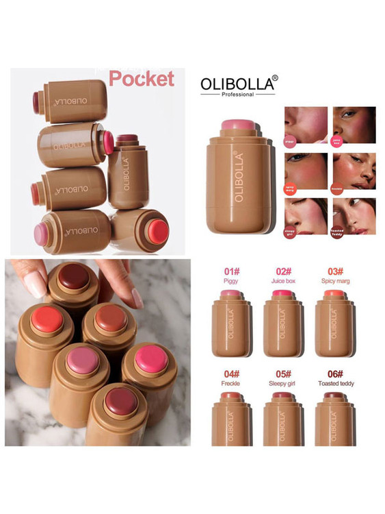 🎀 رژگونه استیکی OLIBOLLA 🎀 ✨ خاصترین مدل این محصول، با 6 رنگ کاربردی و جذاب 💄 بافت سبک، ماندگاری بالا، بدون تستر (برند تستر نداره – جای تستر فقط تو استند) رژگونه کرمی Olibolla Pocket Blush Rosy Cheeks است که برای رنگدهی قابل ساخت و گونههای نرم طراحی شده است. این رژگونه در قالب استیک عرضه میشود که استفاده و حمل آن را آسان میکند. شش رنگ مختلف از این محصول موجود است که در تصویر با شمارههای 01# تا 06# مشخص شدهاند. نام محصول "BLUISH" است و وزن خالص آن 5.3 گرم میباشد. بستهبندی آن شامل 24 عدد در 30 جعبه است. تارخ انقضا : 2030 قیمت: 140